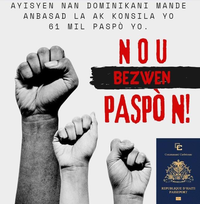 «Los haitianos en Santo Domingo lanzaron una gran movilización para que el gobierno haitiano les devuelva los 60 mil pasaportes que ya pagaron. El Estado gana por la mayoría de los expedientes 200 dólares, lo que da un total de 12 millones de dólares verdes. Esta situación es muy complicada para la comunidad. Es un abuso que merece ser corregido. ¡Hombres y mujeres hacen algo!», escribió Edwin Paraison en su cuenta en X