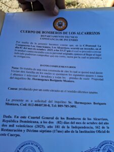 Valerio compartió la copia de una certificación del Cuerpo de Bomberos que da cuenta de que un incendio fue producido por un cortocircuito del sistema eléctrico.