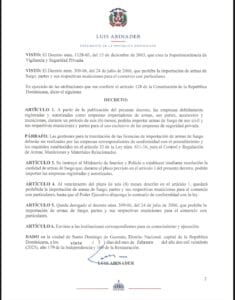 «El presidente de República Dominicana, Luis Abinader, emitió un decreto mediante el cual autoriza a empresas de seguridad privada la importación de armas de fuego de uso civil, sus municiones y componentes por un plazo de seis meses.