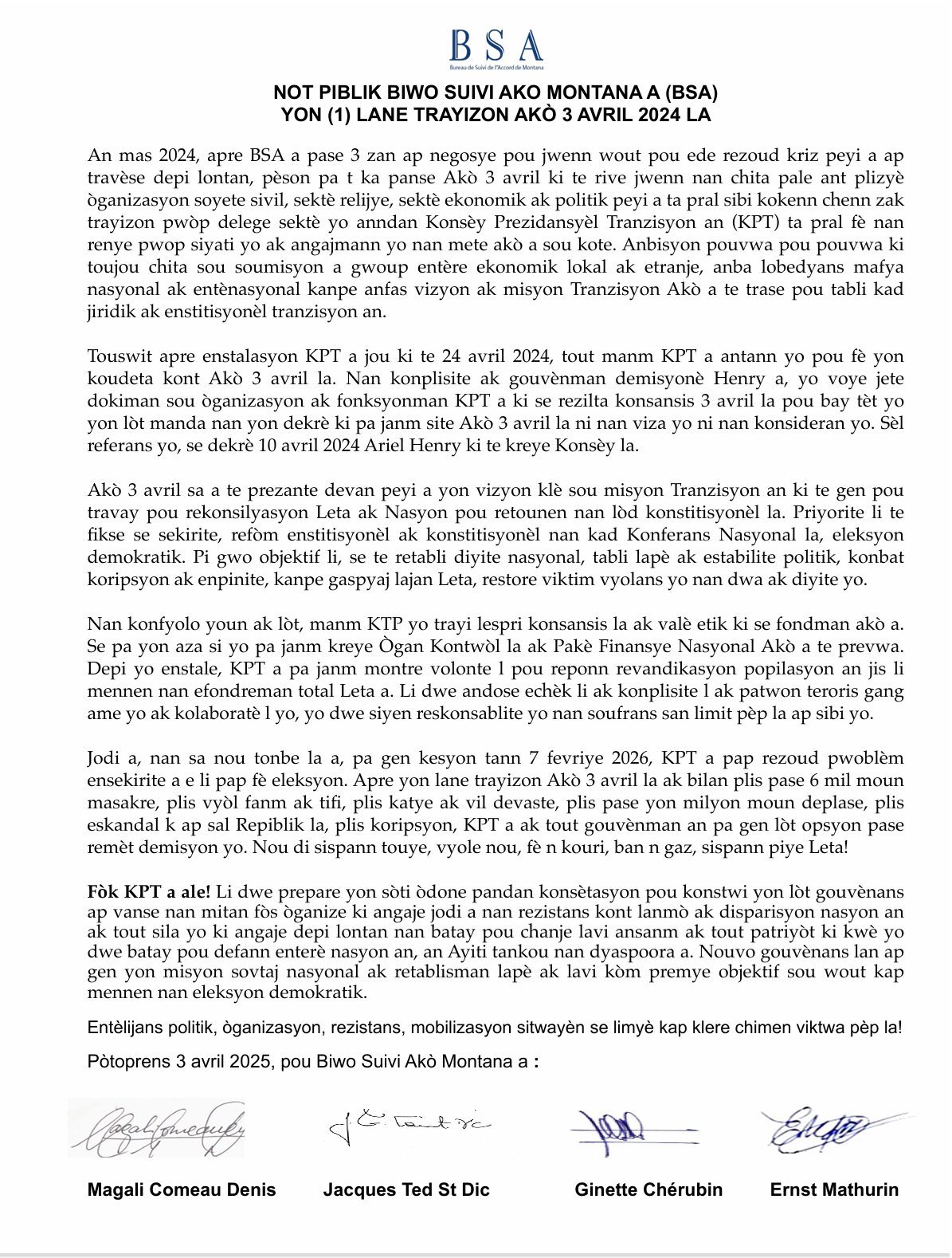 Esta posición, por su gravedad y la estatura de sus firmantes, marca un punto de inflexión en el panorama político haitiano.