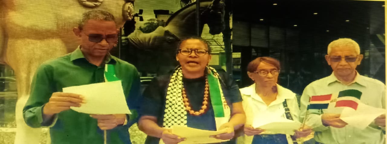 Representantes de Asamblea de los Pueblos del Caribe, Capítulo Dominicano y de Solidaridad Dominicana con Haití, acudieron a los frentes de la Embajada brasileña en Santo Domingo para entregar una correspondencia dirigida al gobernante de esa nación, vía el embajador Carlos Pérez.
