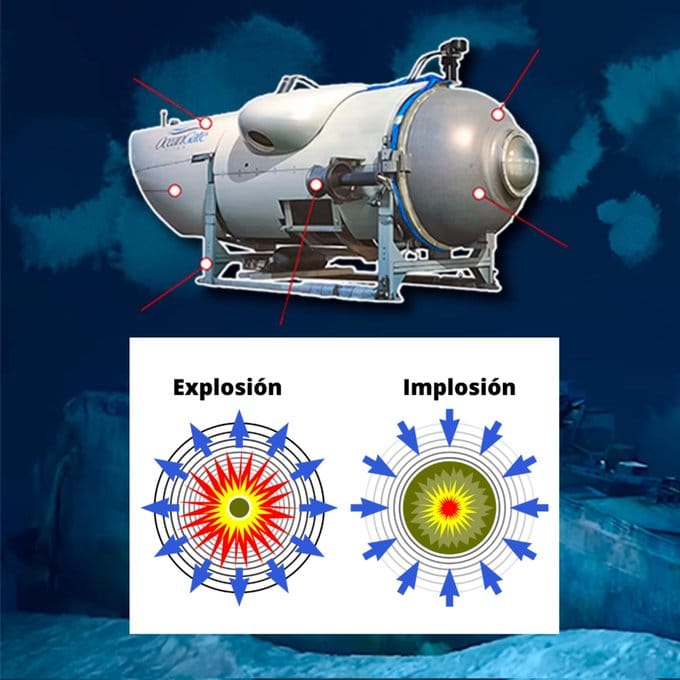 En este caso del sumergible #Titán se habría producido cuando la presión externa del mar a cierta profundidad superó a la atmósfera del interior del sumergible».