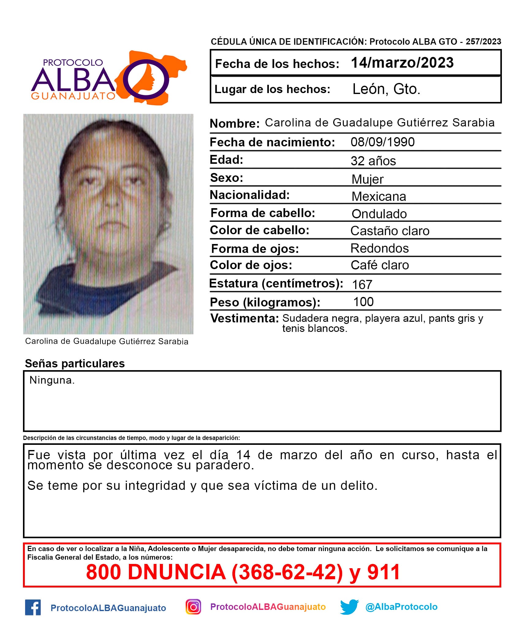 Celaya.- El jueves pasado, Juana Cecilia Paredes, de 27 años, acudió por la noche a una oficina del Ministerio Público para denunciar la desaparición de su hermana Sandra Daniela, de 24 años.