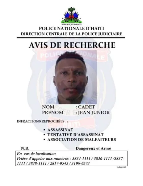 Puerto Príncipe, (EL FACTOR HAITÍ), 4 de julio de 2025._ La Dirección Central de la Policía Judicial (DCPJ) emitió, este viernes 4 de julio de 2025, órdenes de búsqueda contra seis (6) personas.