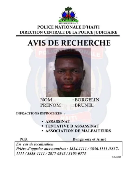 Al mismo tiempo, otras tres personas, Mercier Jean Vernet, Cadet Jean Junior y Borgelin Brunel, también son buscadas activamente por la DCPJ por asesinato, intento de asesinato y asociación delictiva.