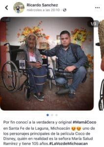 «Lamentamos profundamente el sensible fallecimiento de María Salud Ramírez Caballero, quien fue inspiración para el entrañable personaje de Mamá Coco. Enviamos nuestras más sinceras condolencias a familiares y amigos», reza el texto.