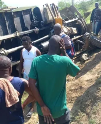 Puerto Príncipe (LFH), 15 de mayo de 2024. _Un camión que transportaba comerciantes volcó alrededor de las 10 horas de este miércoles en la carretera Thomassique (Centro).