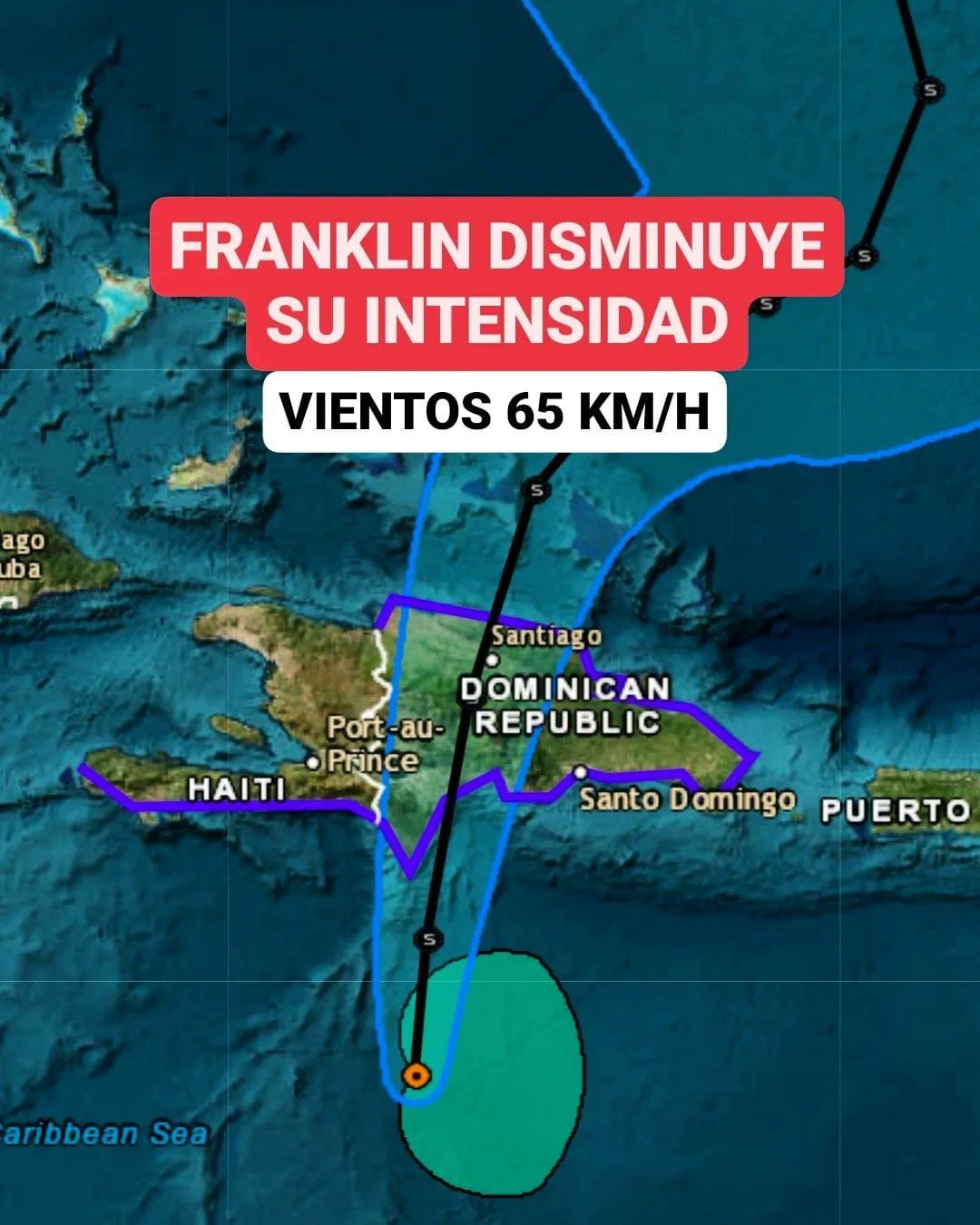 Santo Domingo.- La tormenta Franklin, con su barriga preñada de agua, cambió de rumbo para dirigirse hacia la costa de Barahona como lugar de entrada al territorio dominicano, según dijeron los expertos.