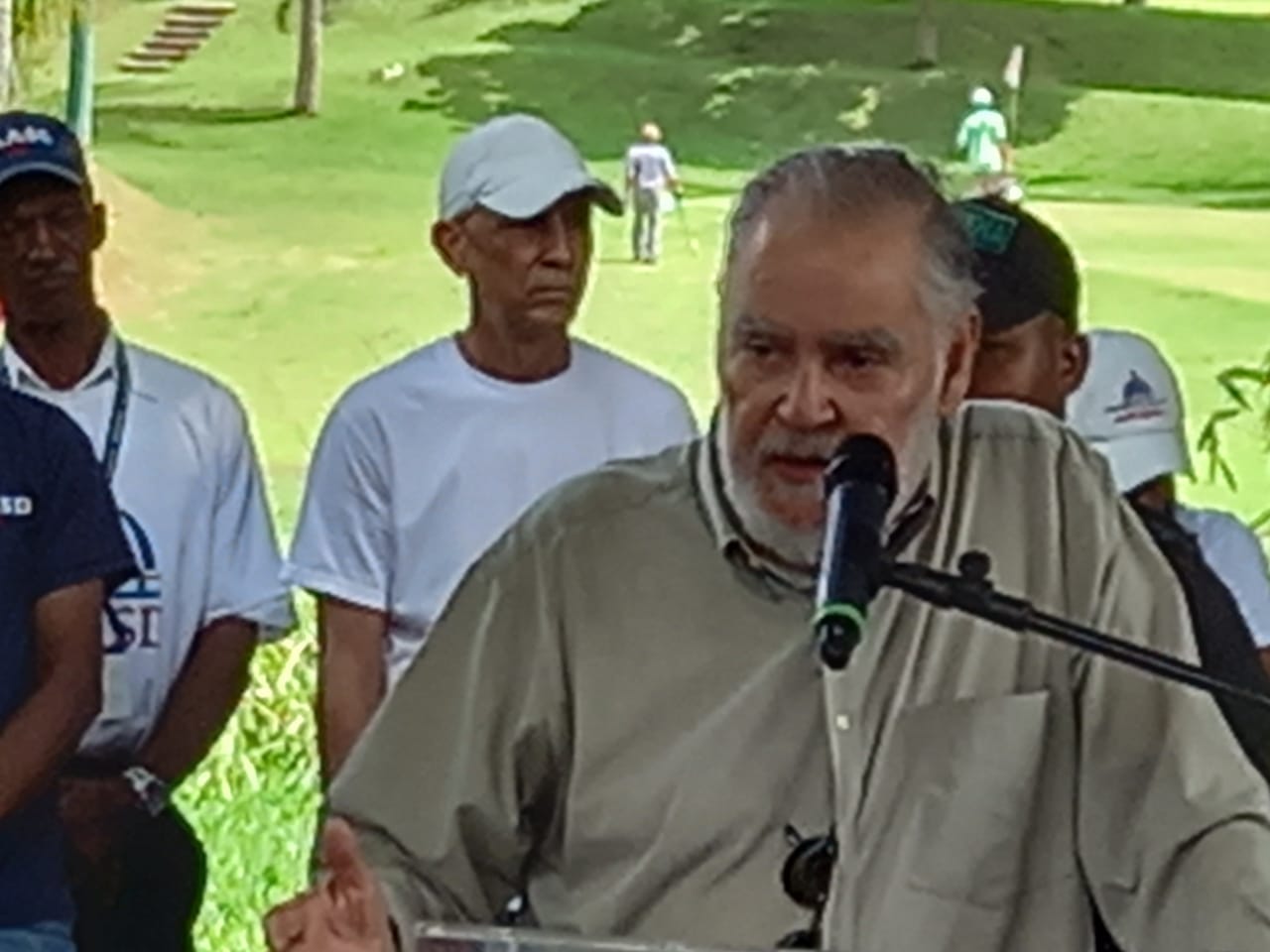 Detrás de Miguel Ceara Hatton, el ministro de Medio Ambiente, el hermoso y bien cuidado campo de golf del sector elegante de Arroyo, separada del empobrecido basrrio de La Yuca. Entre ambos sectores, al Sur del campo de golf, se erige la pestilente cañada cuyo saneamiento y reforestación procura la institución oficial