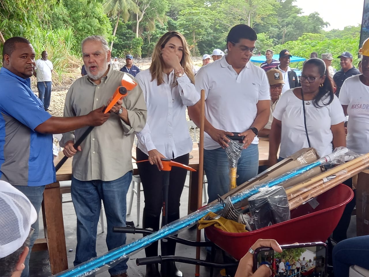 Asimismo, con el fideicomiso DO Sostenible, el ministerio de Obras Públicas y voluntarios de la vecindad a quienes en el acto se les entregaron equipos de limpieza de la cañada y el entorno.
