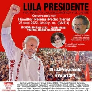 El político y poeta Hamilton Pereira (Pedro Tierra) se referirá al tema “Lula presidente y su impacto en Latinoamérica y el Caribe”. El conversatorio contará con la moderación de la poeta dominicana Chiqui Vicioso.