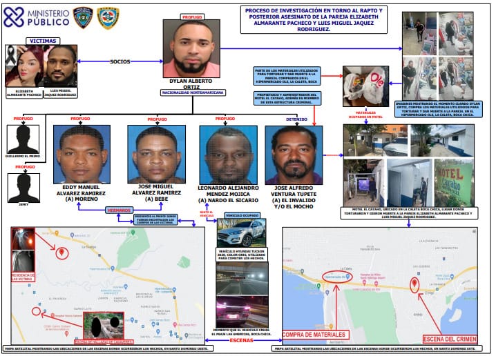 En el expediente acusatorio figuran cinco personas, Alfredo Ventura, Dylan Alberto, Leonardo y los hermanos José Miguel y Eddy Manuel, aunque la policía señala a dos más, Guillermo “El primo”, Jefry (no se ha ofrecido información sobre sus vínculos al crimen). En total suman siete los señalados de cometer el doble crimen.