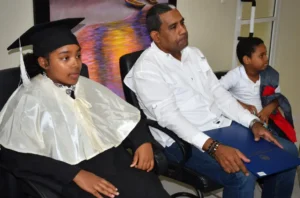 Entregaron el título el director general Manuel Antonio de la Cruz Fernández, la subdirectora académica Ana L. Beltré y la administrativa, Biridiana Batista Dotel.Jenifer Cesarina, la criatura que llevaba en su vientre la joven madre fallecida, tiene el segundo nombre de su progenitora: Cesarina Ledesma Martínez. No fue llevada al acto de entrega del certificado porque es apenas una recién nacida.