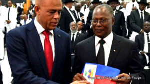 Michel Martelly junto a Jocelerme Privert, otro expresidente haitiano sancionado por coalición con las pandillas