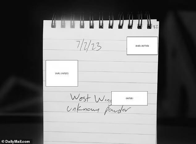 La droga fue descubierta en la taquilla de un espacio utilizado para guardar pertenencias personales cerca de la entrada oeste del área del Ejecutivo, un piso por debajo del Despacho Oval. El medio pudo obtener acceso a las fotografías después de presentar una solicitud amparada en la Ley de Libertad de Información.