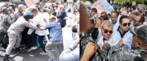 El presidente del CMD dijo que fue “después de los maltratos y vejaciones cuando se nos comienza a convocar, cuando nos trasladamos al Centro Médico Caribe en la 27 de Febrero, con la Presidenta de la Regional Este, Dra. Cándida Acosta, quien en medio del forcejeo policial se fracturó la pierna derecha….”.