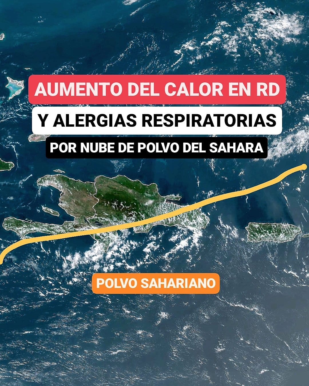 La información proporcionada por el meteorólogo Jean Suriel advierte a quienes padezcan de alergias que tomen las medidas precautorias de lugar. “Las personas alérgicas deben tomar precaución con los procesos respiratorios debido a la nube de polvo del Sahara que incide en República Dominicana”.