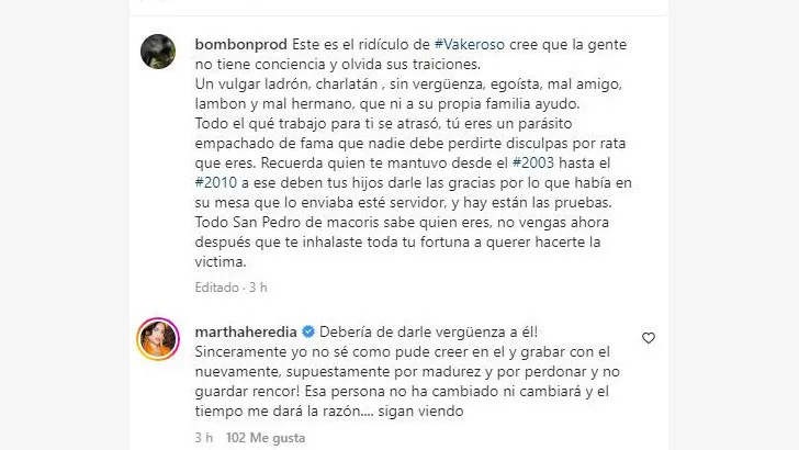 Santo Domingo.- La cantante Martha Heredia volvió a arremeter contra Manuel Varet Marte, también conocido como Vakeró, por su comportamiento.