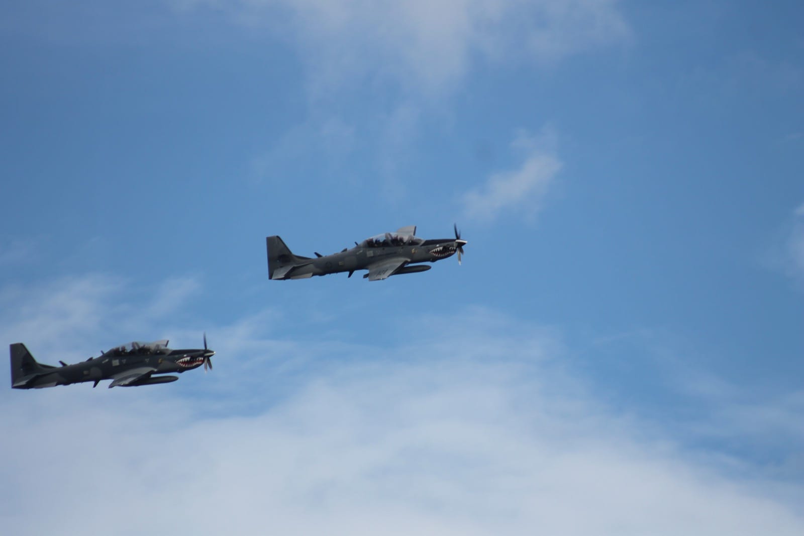 Son observados, asimismo, aviones del tipo tucano al parecer propiedad de la Fuerza Aérea Dominicana, igual que helicópteros desde donde con frecuencia descienden militares en paracaídas.