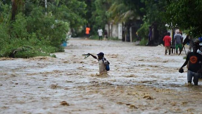 «# Haití # Inundaciones/ Hospital Ste-Croix en Léogane bajo el agua. Pacientes en dificultad», informó Radio Télé Galaxie