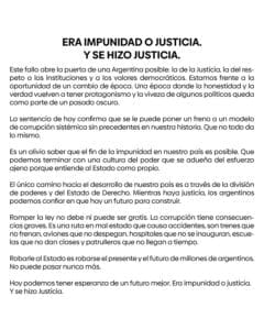 La oposición partidaria y mediática, por su parte, celebró la condena antes y después de que fuera dada a conocer.