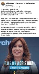Días más tarde, se descubrieron fotos en las que Luciani y Rodrigo Giménez de Uriburu, uno de los jueces del tribunal que juzgaba a Fernández de Kirchner, jugaban juntos al futbol en las canchas de la casa de campo del expresidente Mauricio Macri. «El poder Judicial apesta», condenó la vicepresidenta.