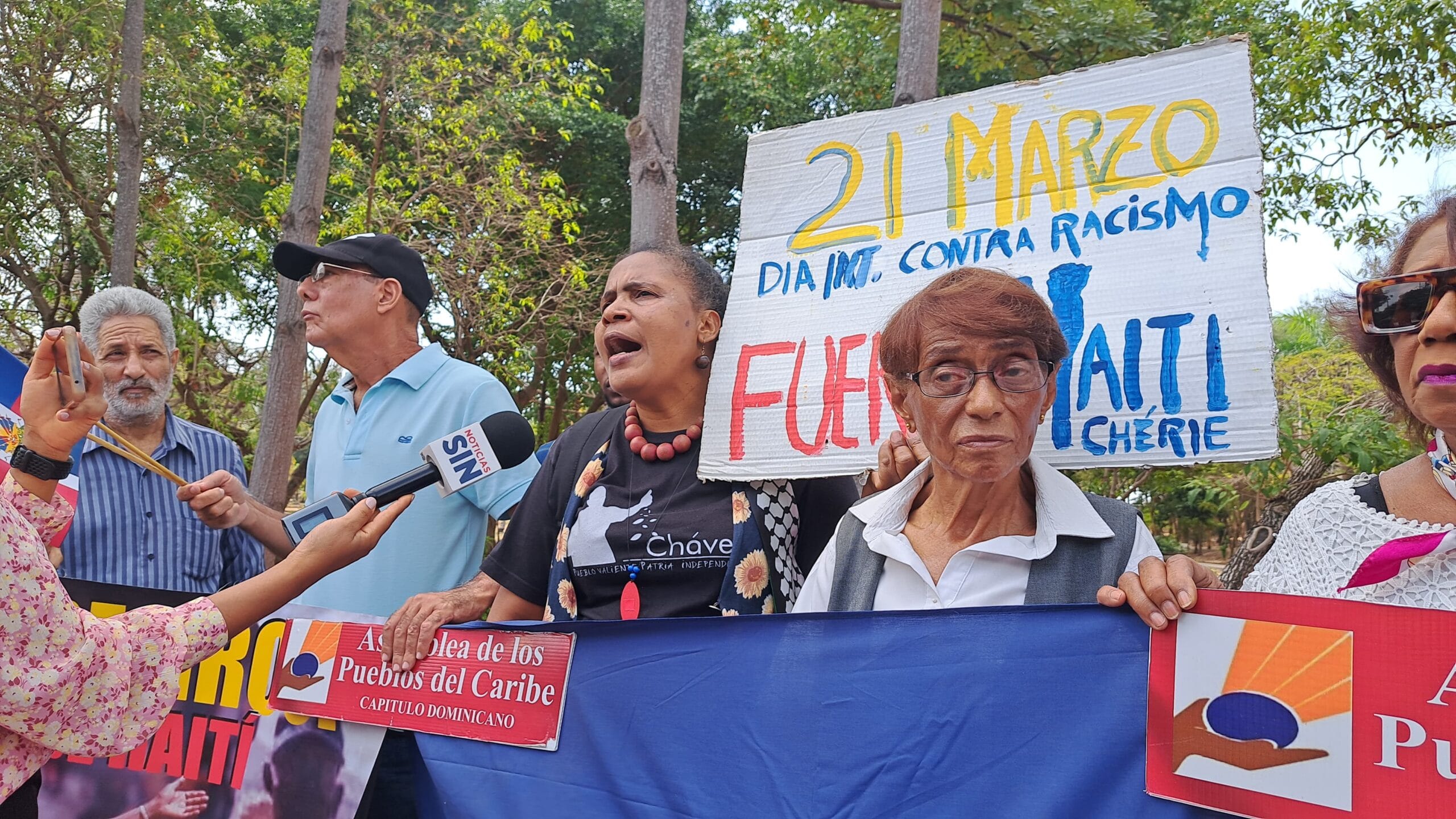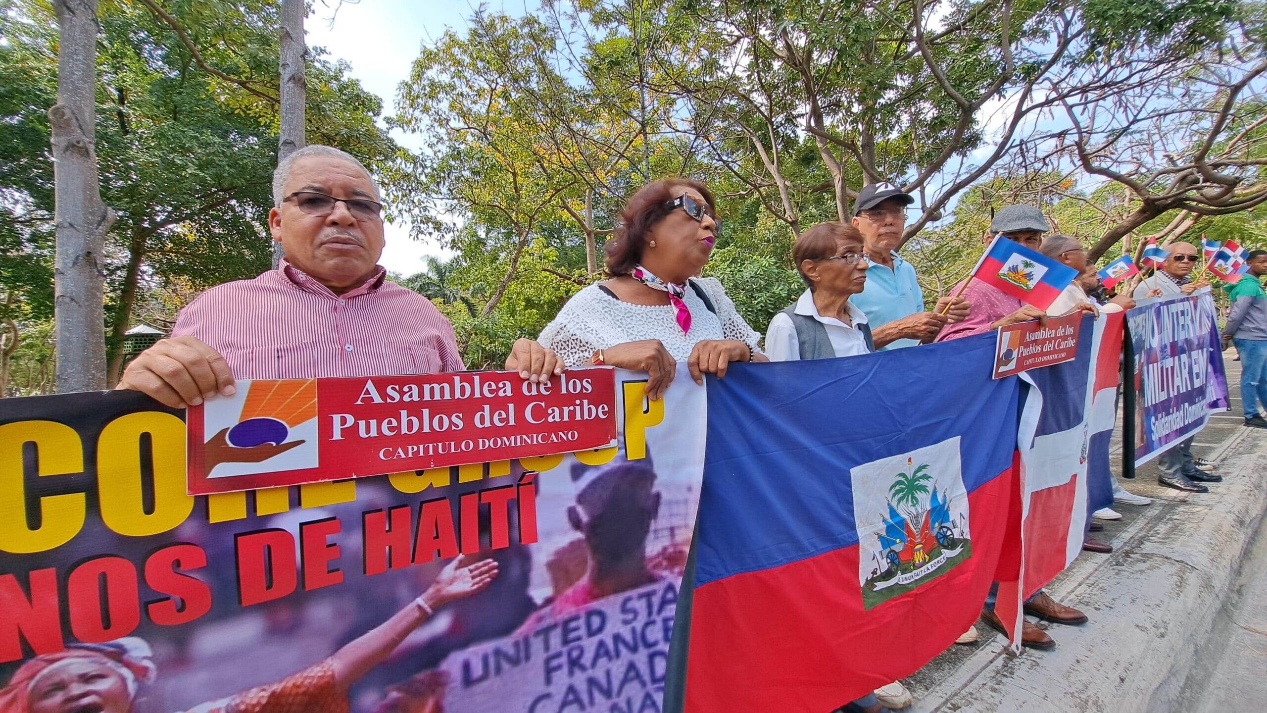 Dirigentes de la Asamblea de Pueblos del Caribe APC, Capítulo Dominicano y de Solidaridad Dominicana con Haití, montaron un piquete la mañana de este jueves, 21 de marzo, frente a la sede de la organización multilateral ubicada en la avenida Anacaona del Distrito Nacional.